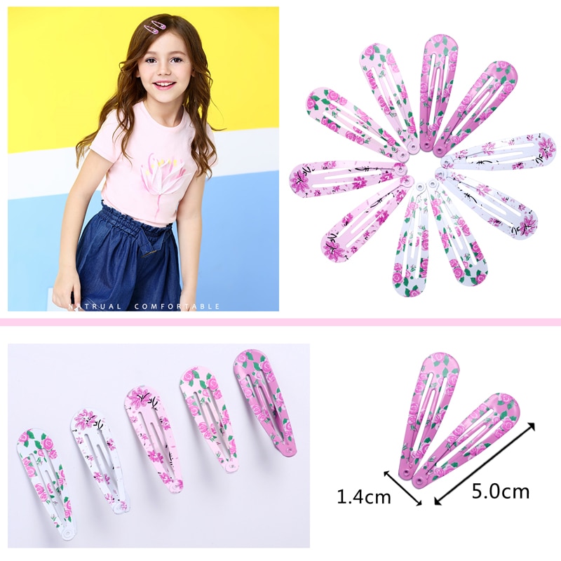 Barrette cheveux imprimée 10 pièces pour jeune fille – Taille: 5 cm – Couleur: Imprimée