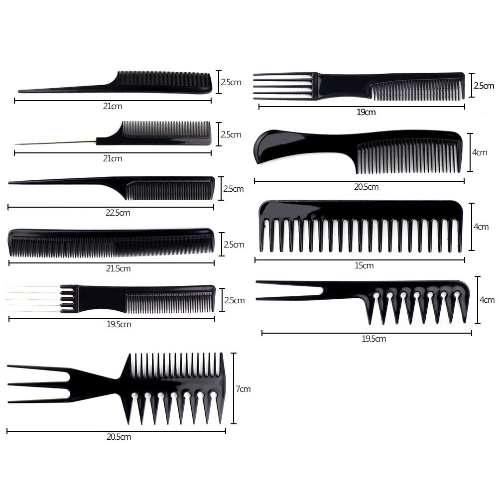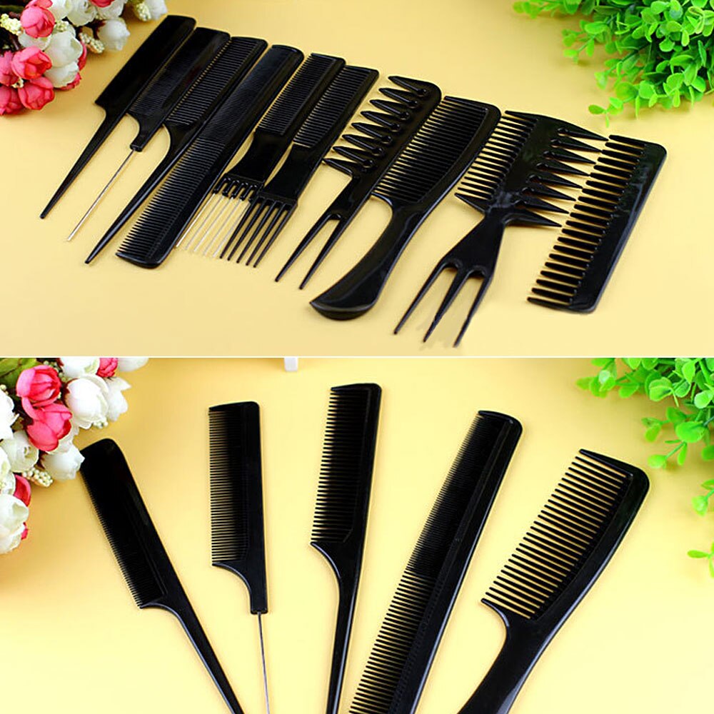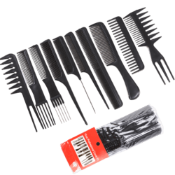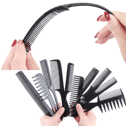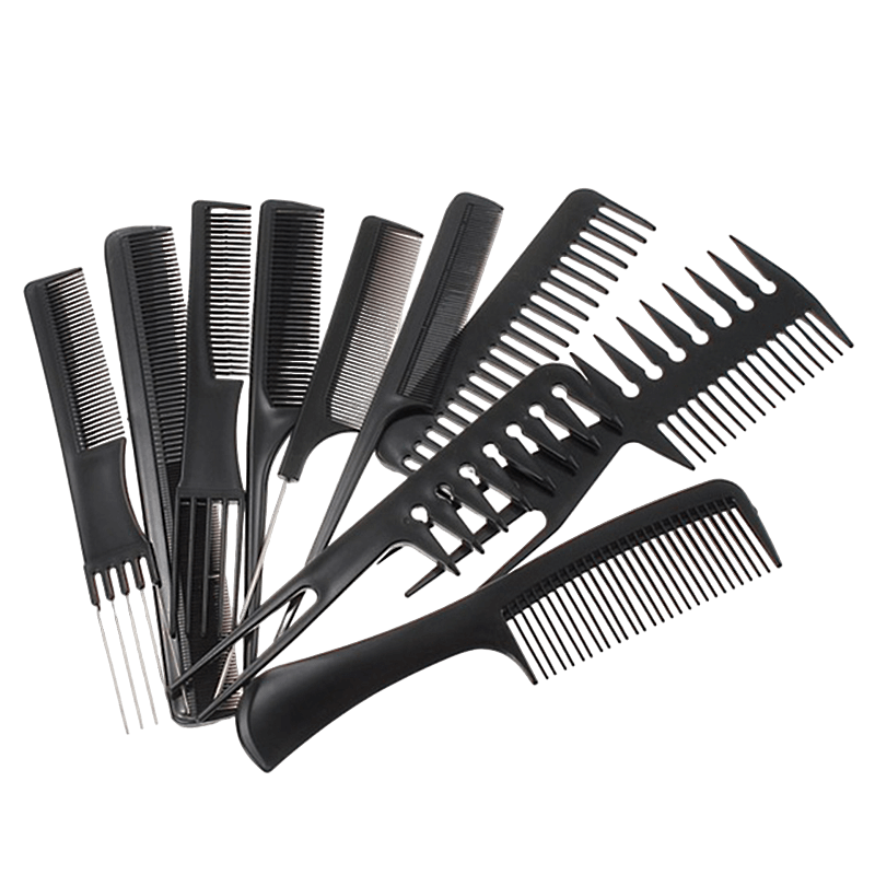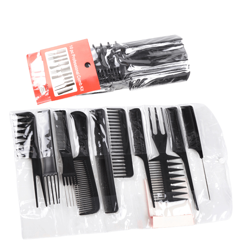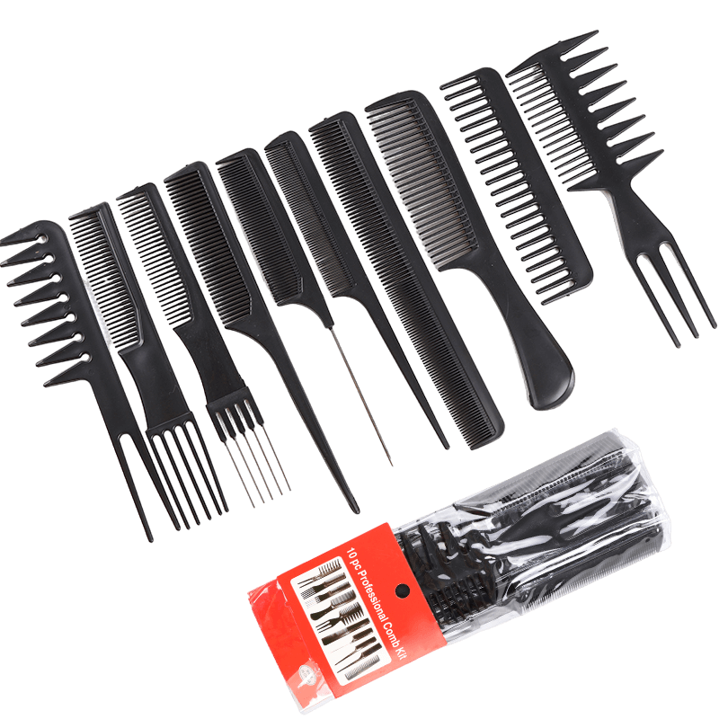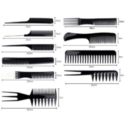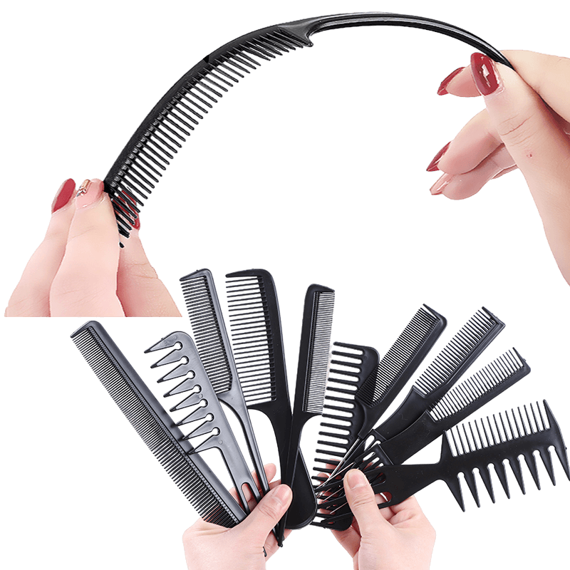 Un ensemble comprend 10 peignes essentiels pour le styliste de salon ou pour usage domestique.